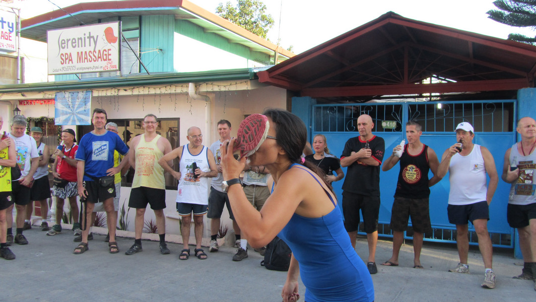 Pin Pin drinking out of her shoe